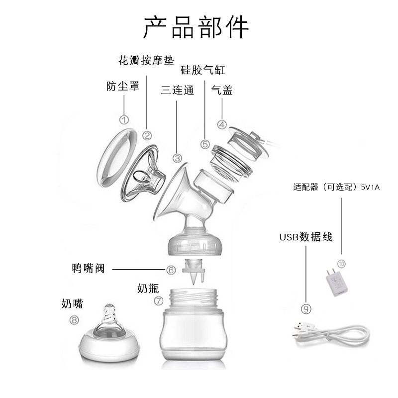 Ten prostokątny, dwustronny laktator elektryczny charakteryzuje się kompleksową konstrukcją i możliwością aż 80 precyzyjnych ustawień, co pozwala na precyzyjną regulację ciśnienia dla Twojej wygody. Jego podstawowe elementy kontaktowe wykonane są z bezpiecznego i niezawodnego płynnego silikonu dopuszczonego do kontaktu z żywnością, co zapewnia matce spokój ducha. Produkt posiada funkcję korekcji brodawek, która skutecznie likwiduje wklęsłe brodawki. Zawiera także bioniczny wzór ssania, który symuluje naturalny rytm ssania dziecka, zwiększając komfort użytkowania. Interfejs użytkownika zawiera intuicyjne przyciski dotykowe i przejrzysty, łatwy do odczytania wyświetlacz LCD, zapewniający doskonały wygląd i łatwość obsługi. Ekran wyraźnie wyświetla czas i postęp ekspresji, dostarczając kluczowych informacji na pierwszy rzut oka.