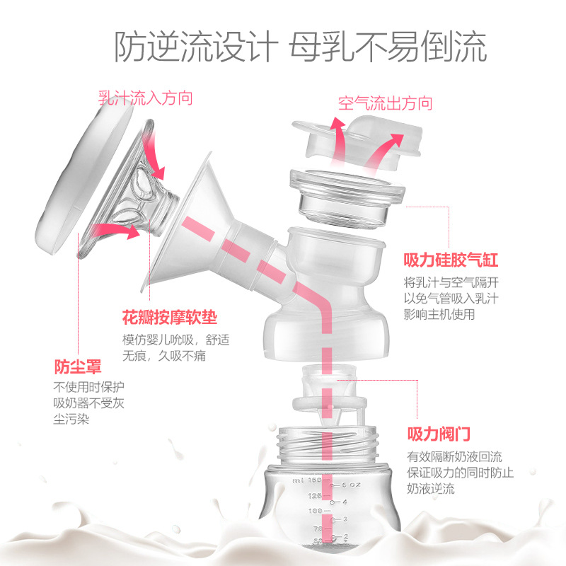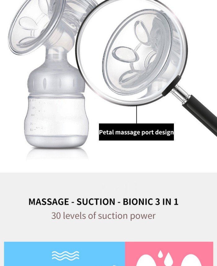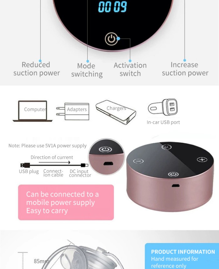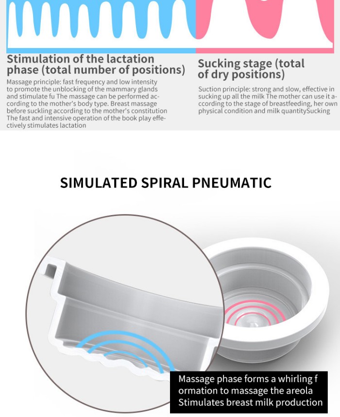 Nasz fabryczny mały, okrągły, jednostronny laktator elektryczny ma trzy wygodne ustawienia ułatwiające obsługę: po pierwsze, tryb masażu, służący do delikatnego wywoływania produkcji mleka i przygotowania do odciągania; następnie tryb pompowania zapewniający szybką i skuteczną ekspresję przy minimalnym wysiłku; i wreszcie tryb ssania, który naśladuje siłę i rytm ssania Twojego dziecka, zapewniając taki sam komfort jak podczas karmienia piersią.