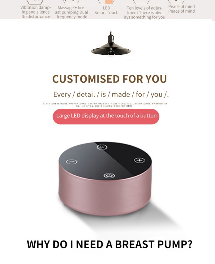 Jesteśmy profesjonalnym producentem specjalizującym się w małym sprzęcie dla matek i niemowląt. Jesteśmy zaangażowani w projektowanie, rozwój i produkcję szeregu bezpiecznych i niezawodnych urządzeń dla matek i niemowląt. Ten mały, okrągły, jednostronny laktator elektryczny ma trzy tryby: masaż, pompowanie i bioniczny. Rozwiązuje problemy z karmieniem piersią u matek po porodzie i można go przełączać między trybem jednostronnym i dwustronnym, aby poprawić wydajność odciągania.